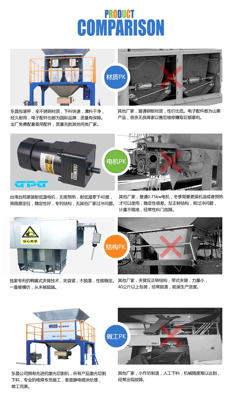 三、設(shè)計(jì)結(jié)構(gòu)好,東昌電動定量秤,國內(nèi)******采用三料口下料,三級給料,外加震動式喂料設(shè)計(jì),精度高速度快,效果遠(yuǎn)超國內(nèi)同類產(chǎn)品。